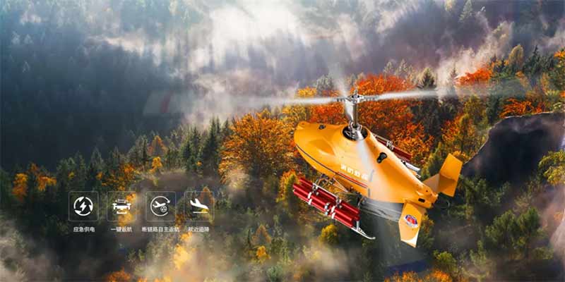 智能控制、简单易用。无人直升机配置多种传感器和环境感知设备,支持与其他无人机或有人机在同空域执行飞行任务,可实现就近迫降、规避禁飞区、限制区域内飞行、吊挂稳定控制、移动平台起降、超低空飞行、机动躲避飞行、突风响应控制、绕楼盘旋爬升、区域自动巡逻等控制功能,具备较高的智能控制水平;配置智能化地面控制站,结合视距链路、北斗短报文、4G/5G移动通信等手段和多种安全控制措施,仅通过地面控制软件就可实现无人直升机完整飞行过程的监控,简单易用且使用维护成本较低。低成本、高安全。采用低成本航空发动机配置组合导航设备,具有双天线差分测量航向和地磁航向测量能力、双余度传感器配置、机载应急供电、一键返航、断链路自主返航等多种安全设计,能够在不同环境下安全稳定飞行,飞行安全性较高。耐高温,强抗风。采用钛合金机体结构、碳纤维复材旋翼和机壳,具备卓越的高温环境适应能力和防雨性能。具备较强抗风能力,抗风可达14 m/s(七级风)。